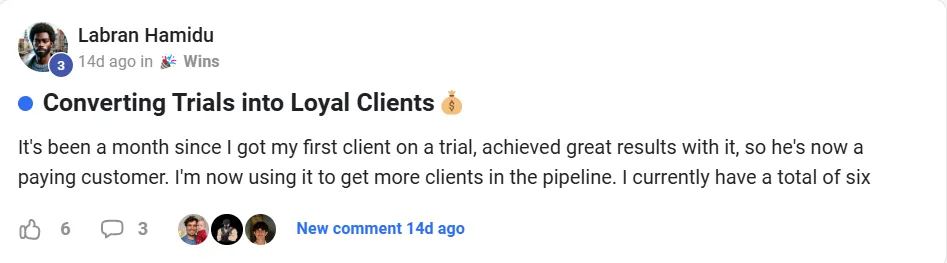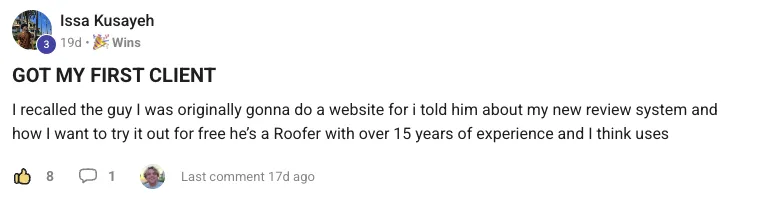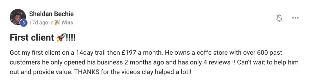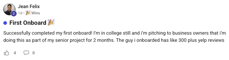 Using the bonuses in this community Jonathon was able to dial in his reputation management offer with his agency and add $7K in sticky recurring revenue. Here's the full interview with Jonathon.